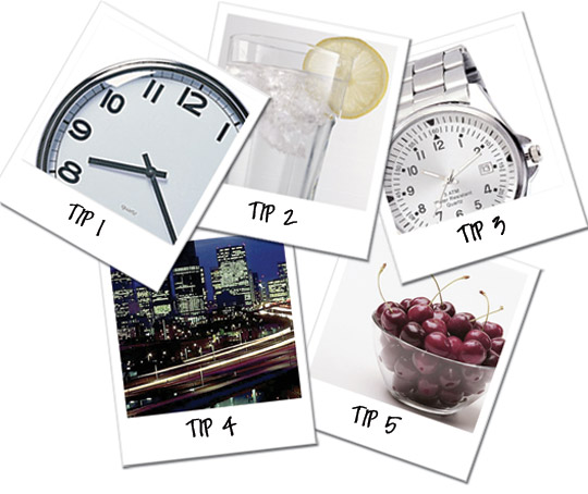 Er bestaan heel veel websites met tips tegen jetlags, en de clichés zijn waar; het is belangrijk om zo snel mogelijk mee te gaan met het ritme van het land waar je bent. Eten en slapen op de juiste tijden.
